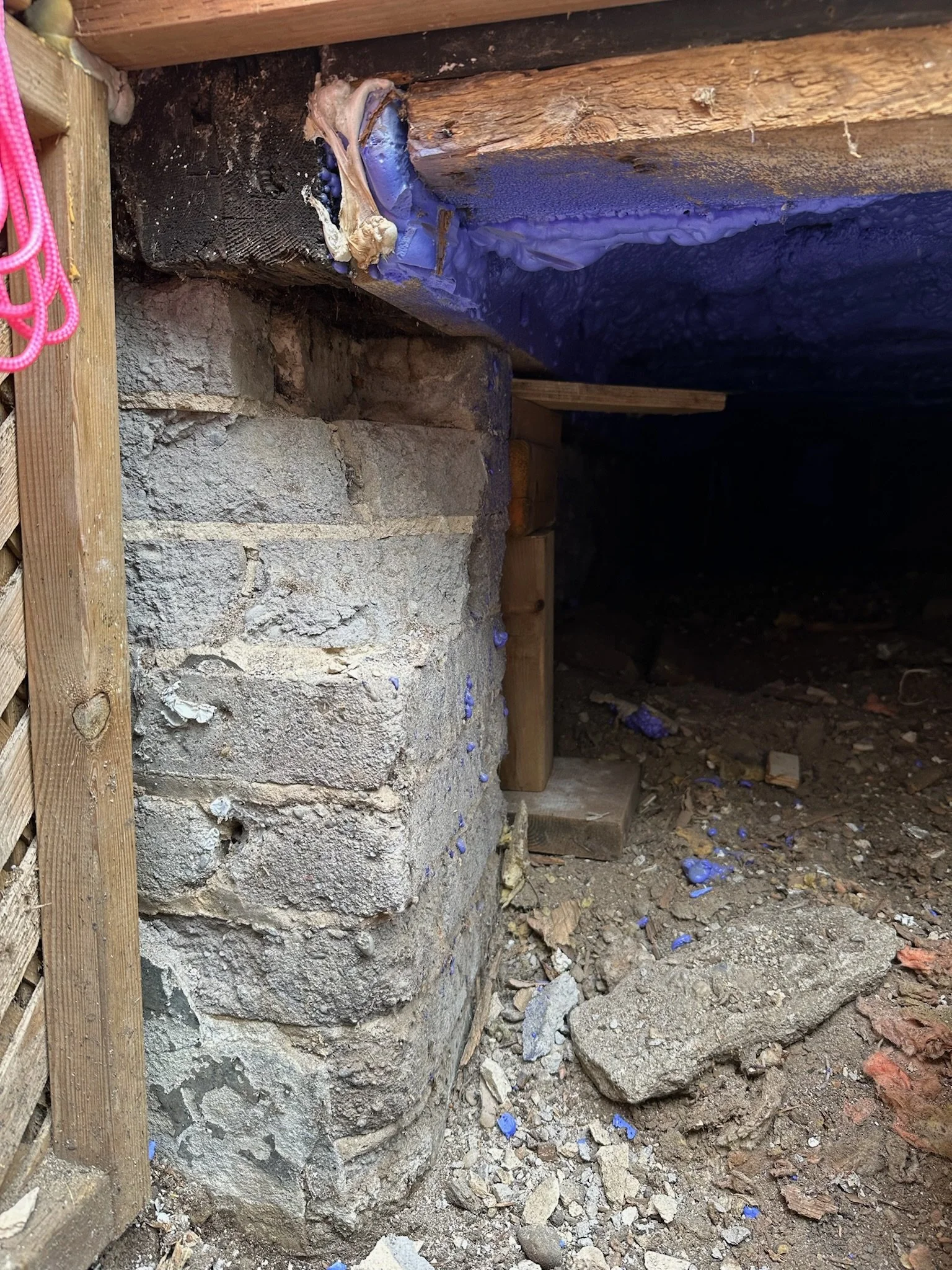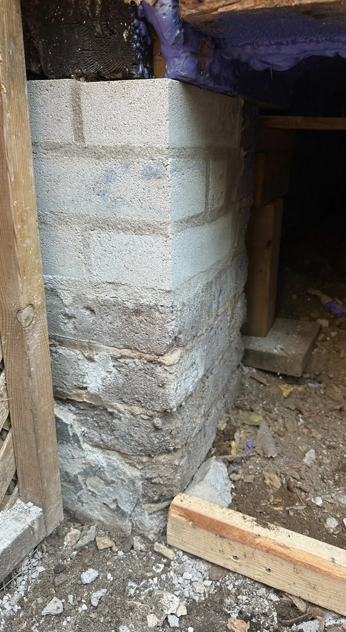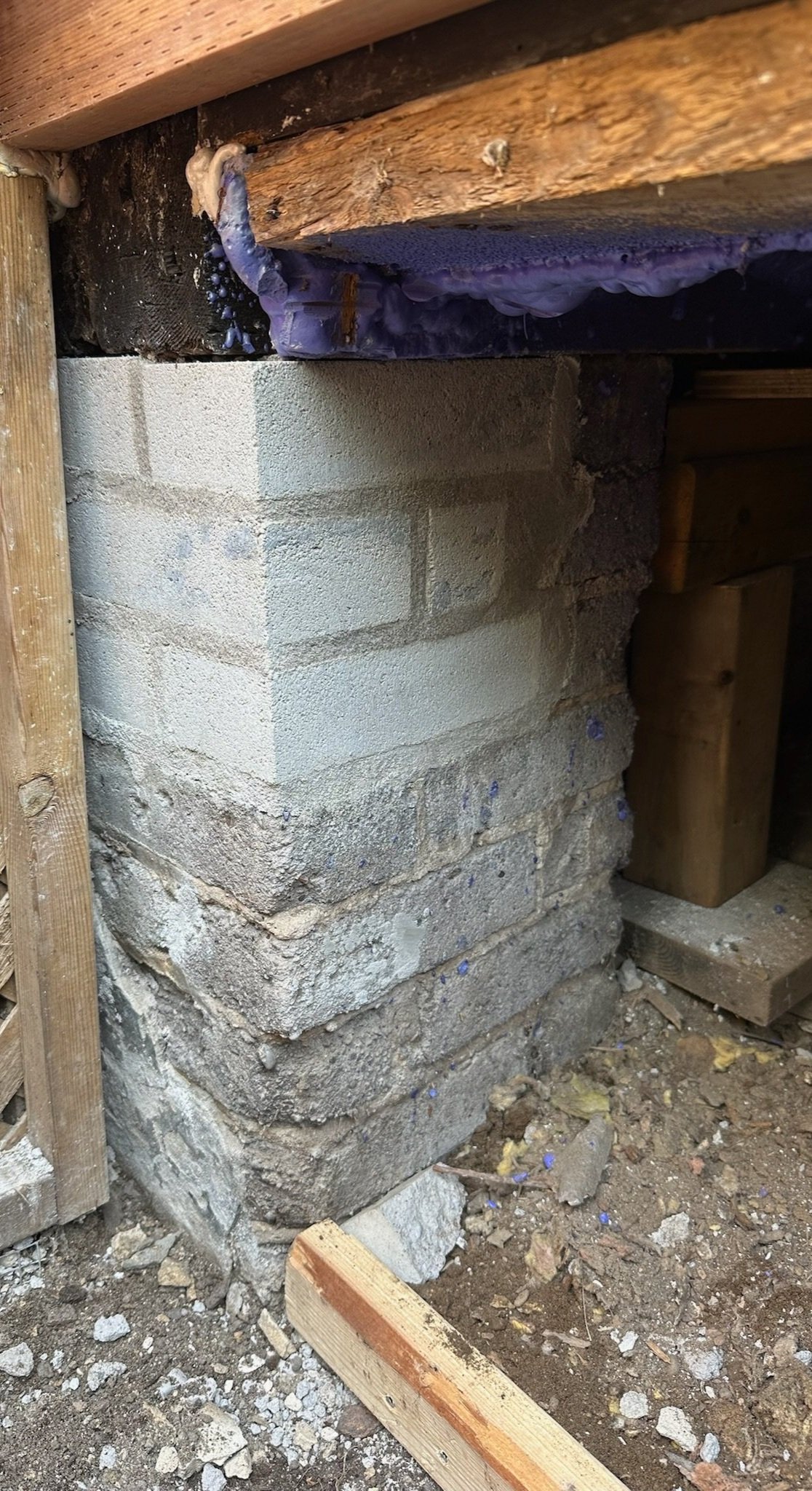A client came to us with an urgent request to repair foundation pillars underneath an older addition on their home. The bricks below the joists were decaying, compromising the structural integrity of the addition.